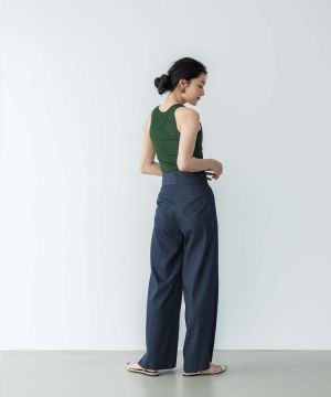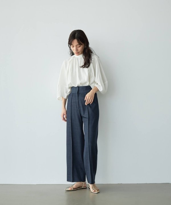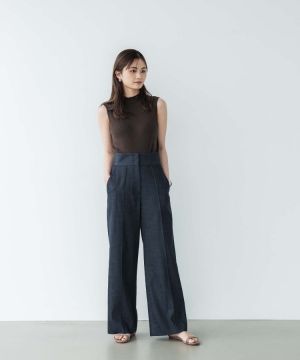 ヒップから裾にかけて真っ直ぐに落ちるワイドストレートパンツ。