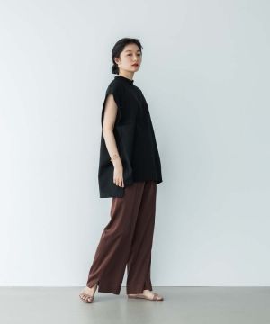 裾にスリットを入れているので、フラットシューズを合わせたリラックス感のあるスタイリングも上品に仕上がります。