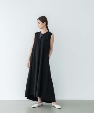 まっすぐなAラインが特徴のマキシ丈ドレス。