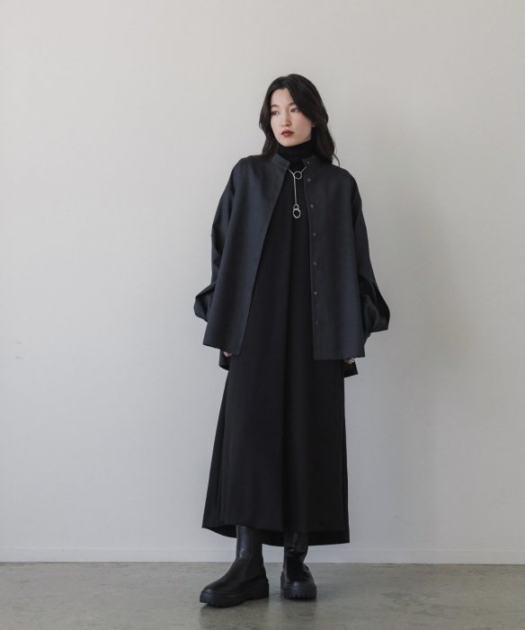 ボディラインをほとんど拾わないシルエットですが、衿と袖まわりを開けすぎずステッチも極力見えないようにすることで、ゆったりしたシルエットながらも洗練された印象を与えてくれます。