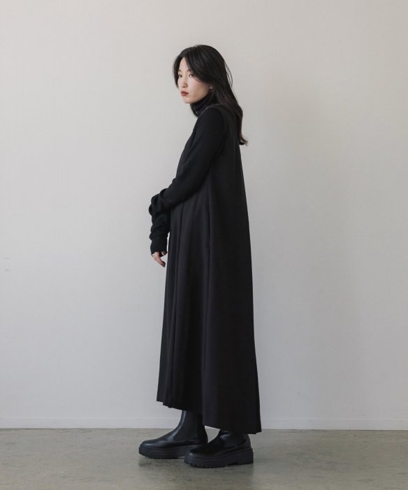フロントは片倒しタックにすることで上品なドレープを、バックはボックスタックにすることで綺麗なAラインを描きます。