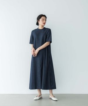 バックスタイルが特徴的なハーフスリーブドレス。