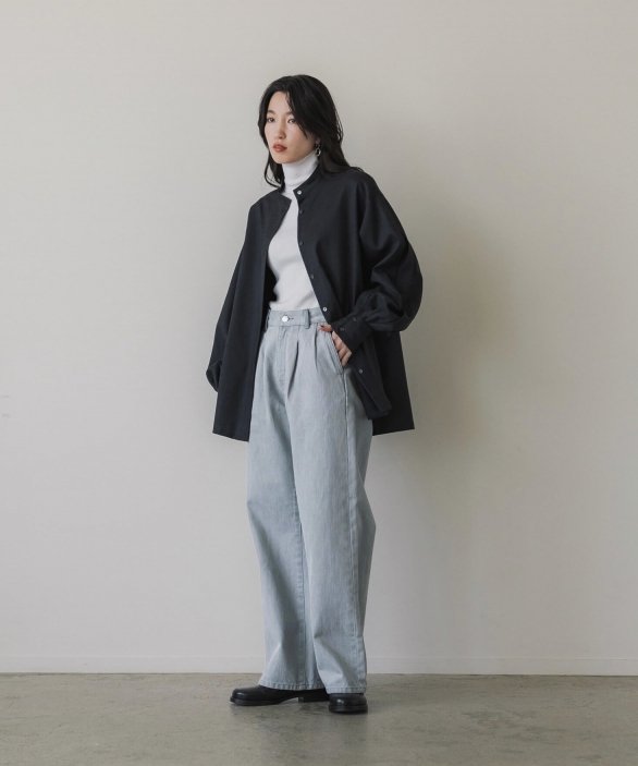 着回しの効く、シンプルながらも存在感のあるバンドカラーシャツ。